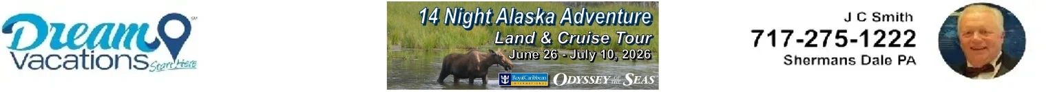 We are a veteran-owned and family operated travel agency located in the heart of Central Pennsylvania. We want you to be assured that we will take care of you and your family as one of our own. There is no vacation too big or small. Let our love for travel help to create the vacation of your dreams! There is no group too big or too small! We specialize in Alaska, Bus Trips and Land Tours. Come to Shermans Dale and book your Alaska Cruise.